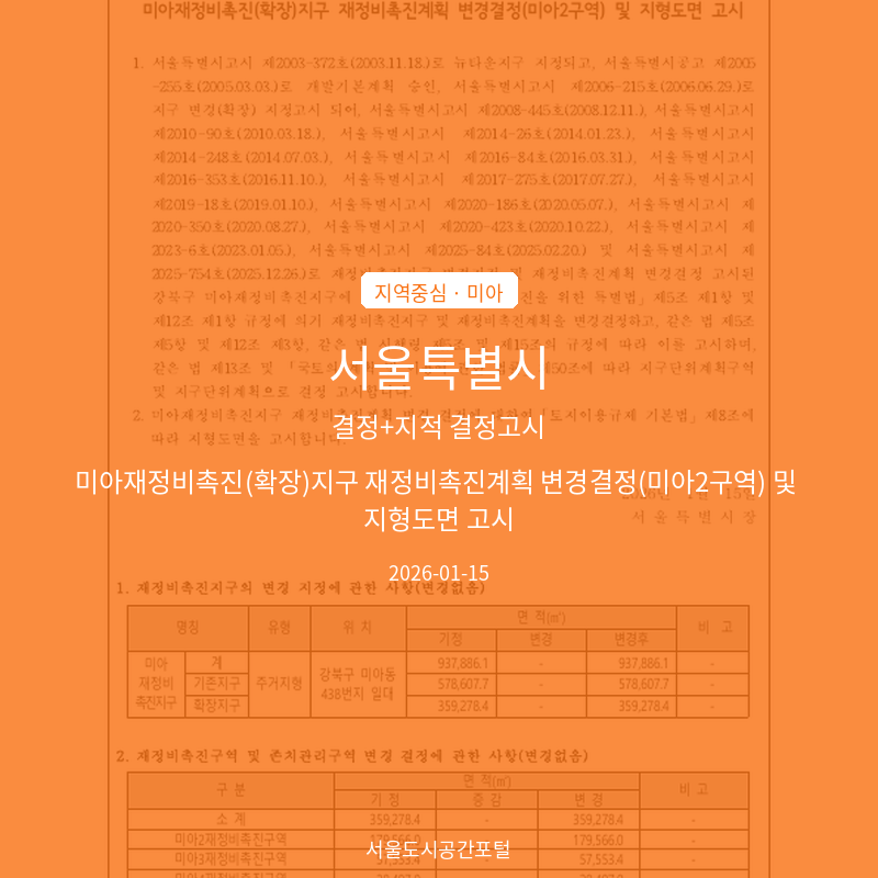 2026-01-15 서초구 결정 고시. 위치: 서울특별시 반포동 752번지 일대. 💡 AI 해설 이 고시는 반포주공1단지 재건축 관련 고시문에서 도시계획시설 조서에 잘못 표기된 내용을 정정하는 고시입니다. 2025년 10월에 발표된 원래 고시의 단순한 착오 수정입니다. 영향 분석: 반포주공1단지 1,2,4주구 주민들에게는 이미 결정된 재건축 계획에 변화가 없으며, 부동산 관점에서도 실질적인 영향은 없는 단순 정정사항입니다. 재건축 지구단위계획 정비계획 경미한변경 … 더 읽기