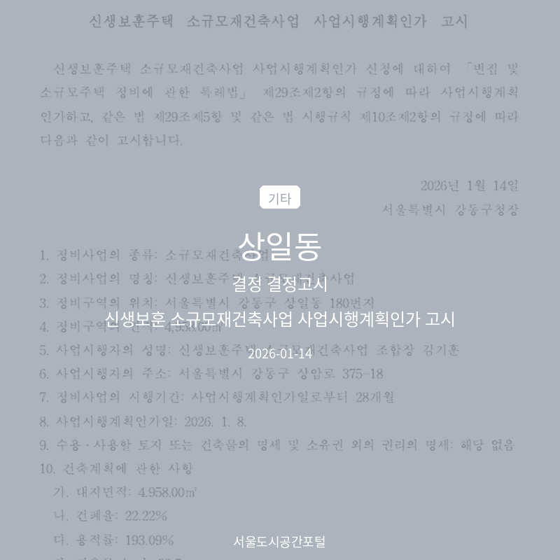 [상일동] 신생보훈 소규모재건축사업 사업시행계획인가 고시 (2026-01-14)